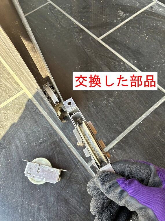 「玄関引き戸の開け閉めがスムーズにいかない。」というお客様のお困り事で、相談がありました。ご自宅に伺って確認すると、戸車がへたっていたので、取り替えてスムーズな開閉を実現。大変喜ばれました。